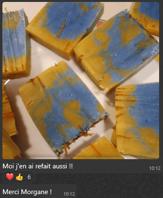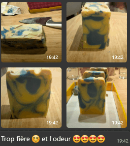 Grâce à tes vidéos, j’ai osé, et j’ai enfin réussi mon premier pain de savon sans stress.”